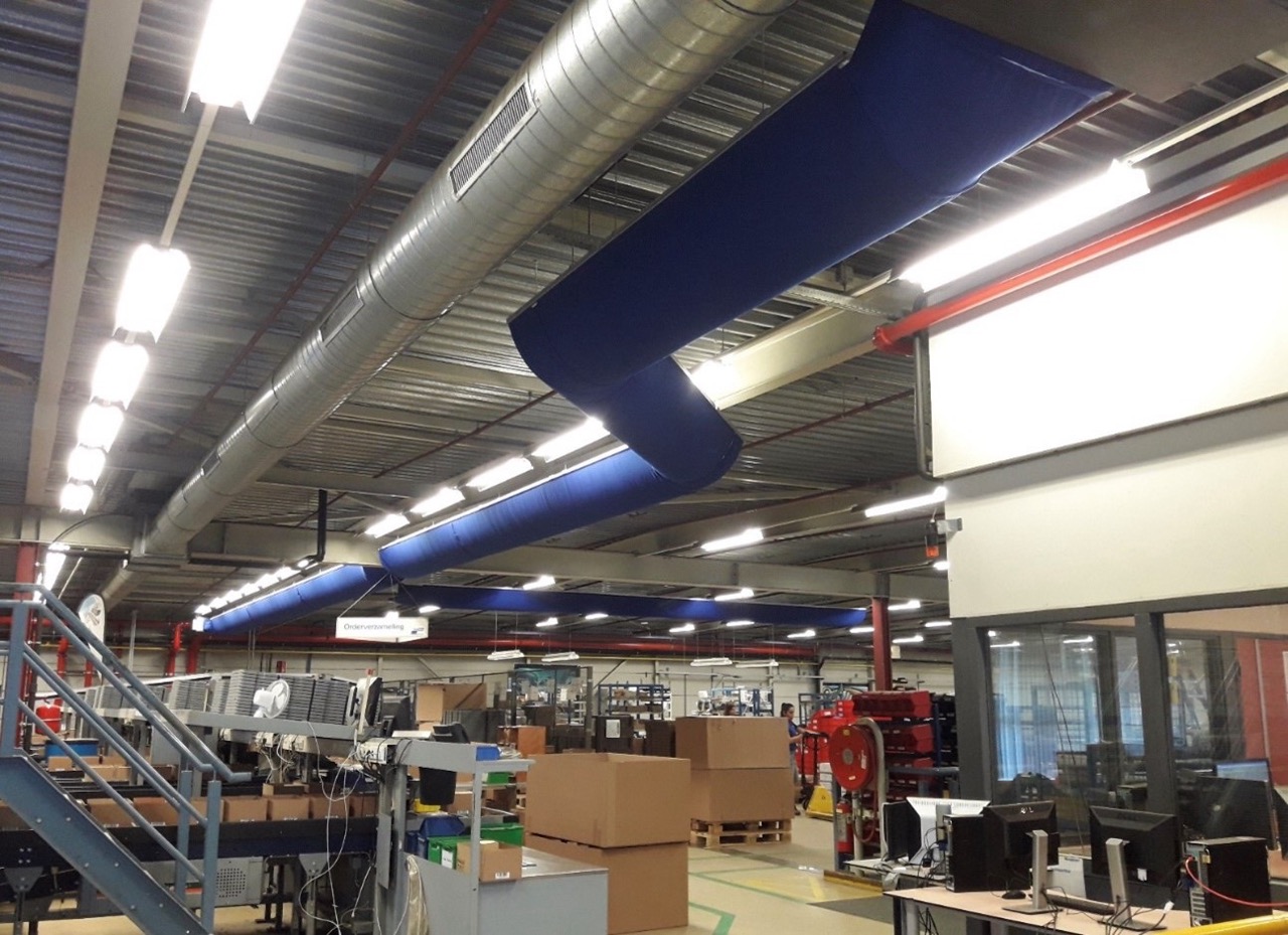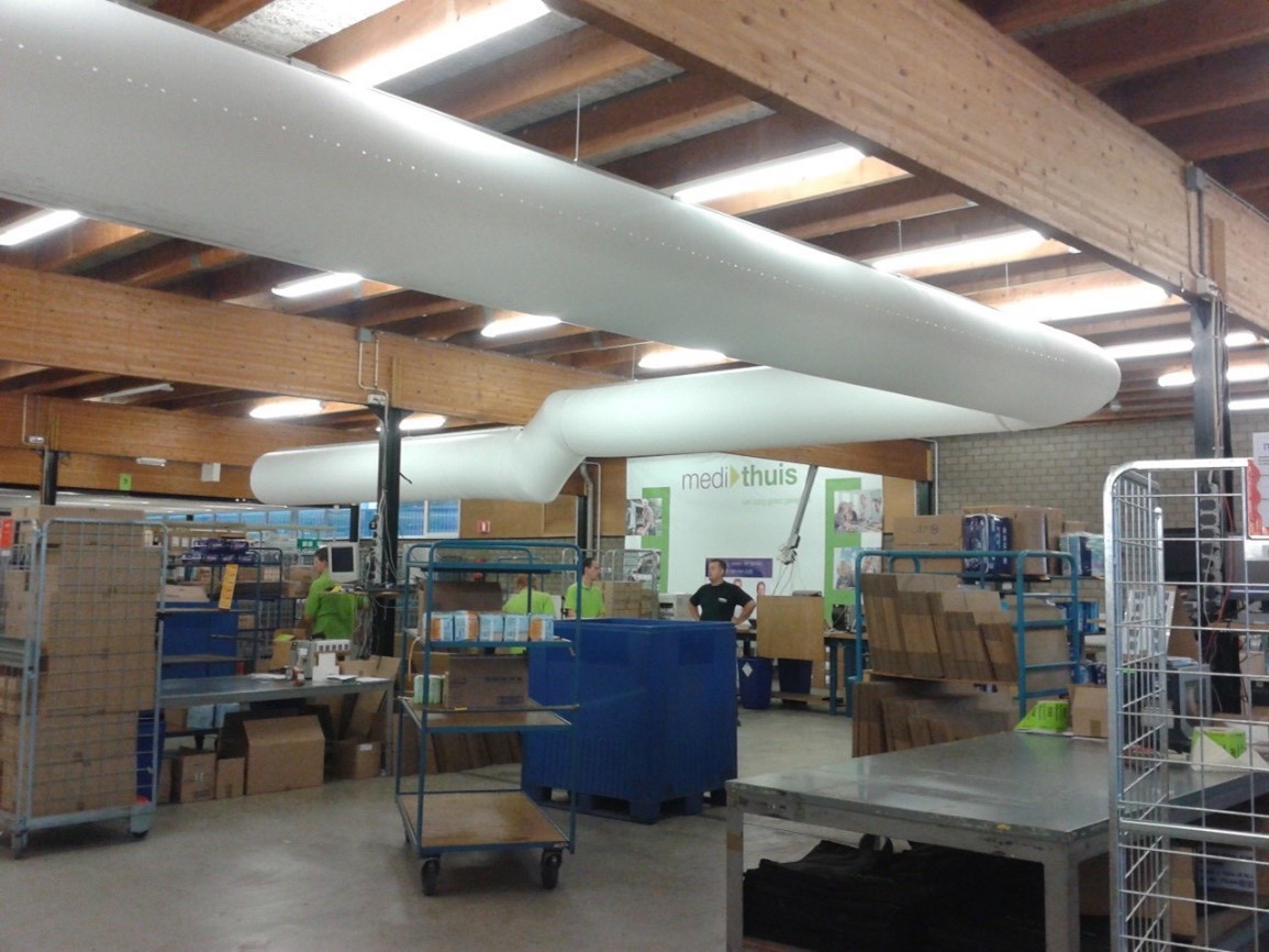 Luchtverdeelslangen/airsocks brengen verse lucht gecontroleerd en gelijkmatig in de werkzone. Ook bij hoge plafonds en grote ruimtes.